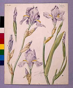 Dans le langage des fleurs, l’iris symbolise l’inconstance, le cœur tendre ou l’amour confiant[13].